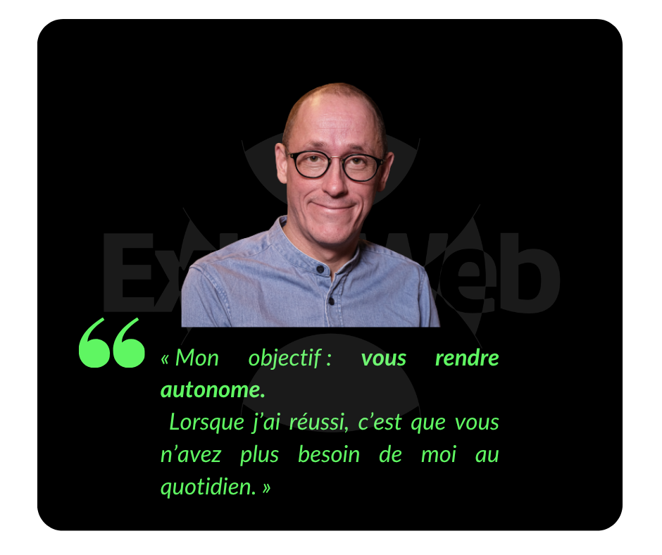 J’ai aujourd’hui à cœur de poursuivre ce travail de webmarketing en temps partagé afin de me rapprocher de chaque client et dossier. Je fais évoluer mon rôle pour ne plus « vendre la bonne solution » mais la construire, la déployer et la rendre durable pour chaque entreprise.